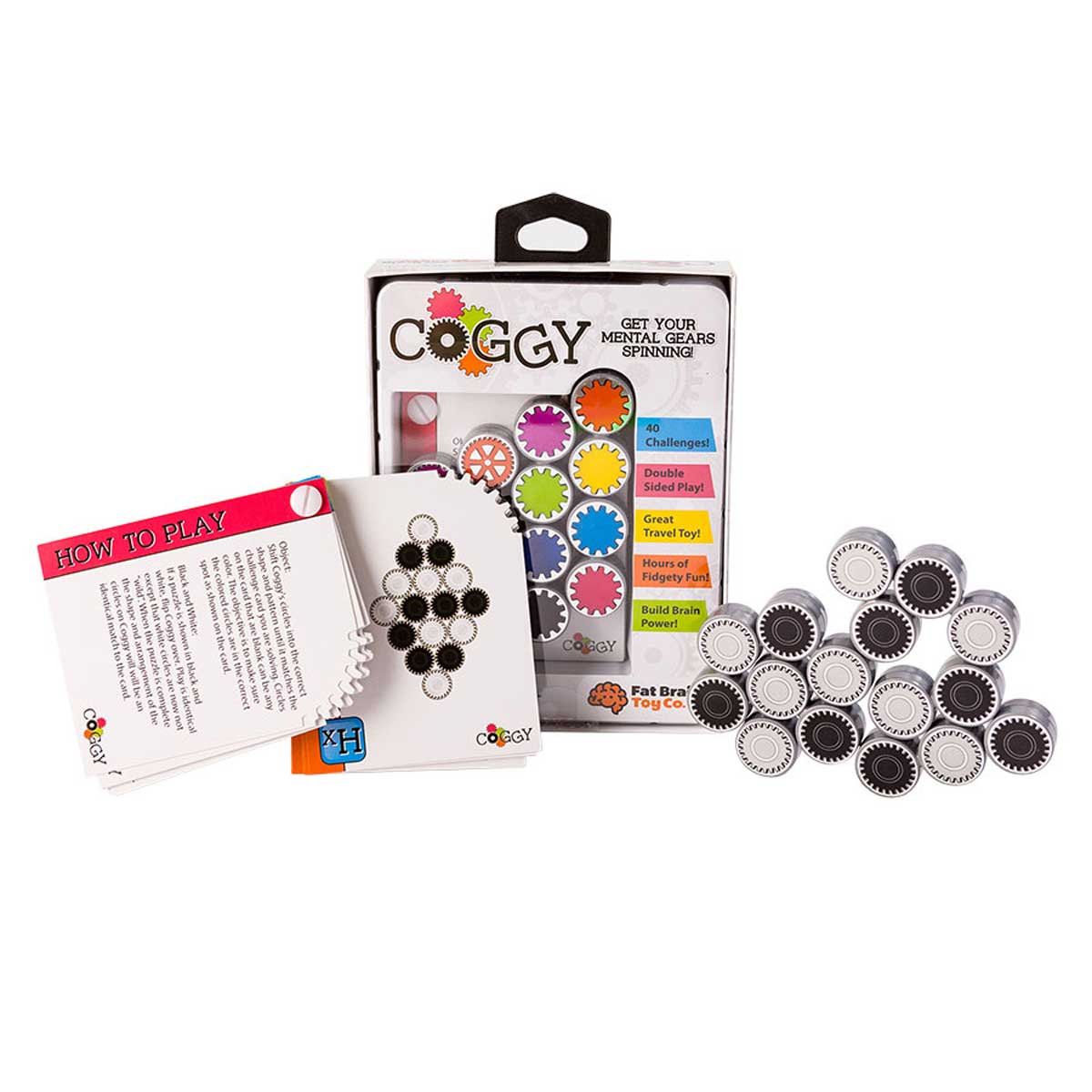 Double-sided with coloured gear puzzles on one side and challenging black and white puzzles on the other. Feeling antsy? Coggy is an excellent fidget toy! Gears each shift up to 255 degrees for cognitively exciting flexibility. Feel the gears click as they fall perfectly into place.