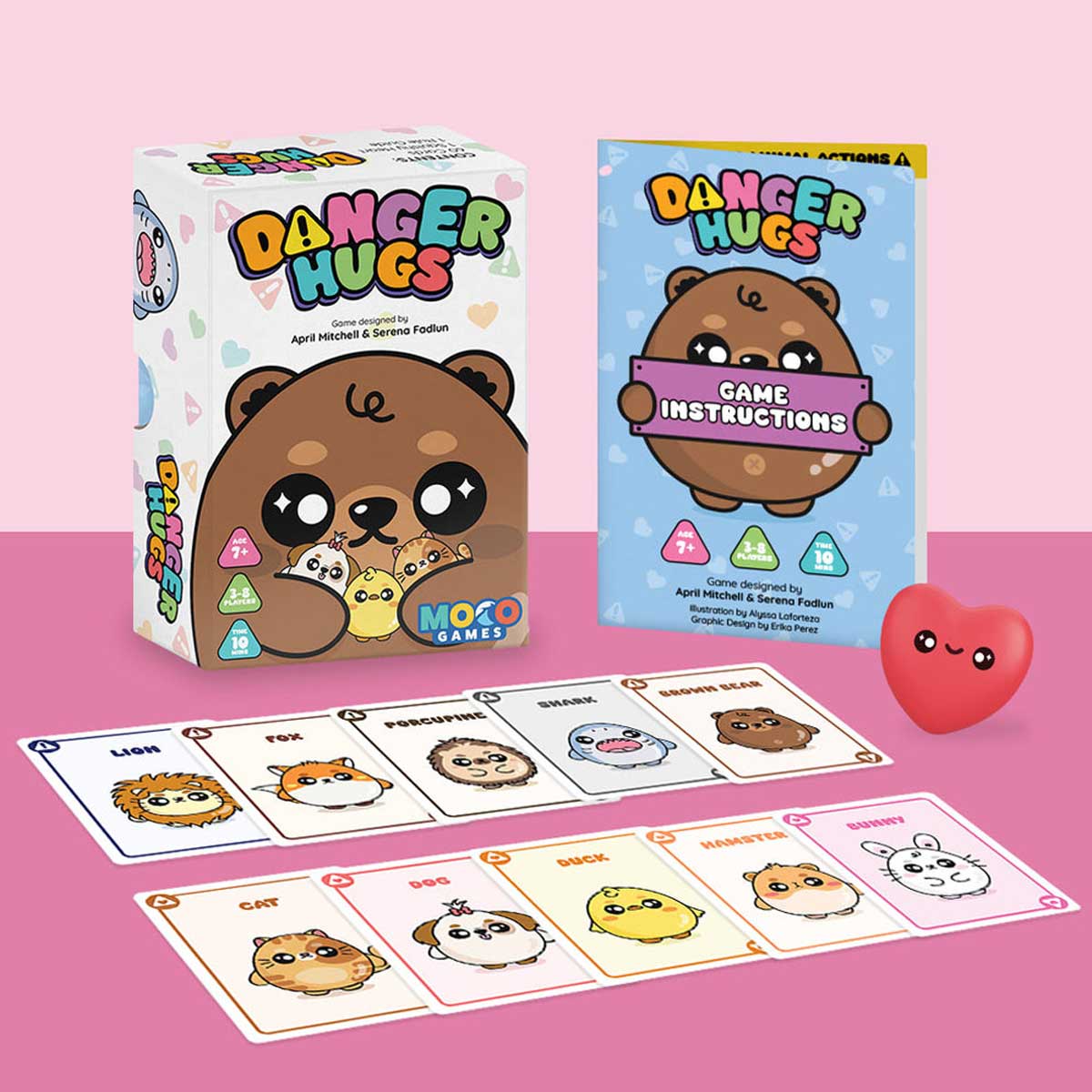 Danger Hugs is a fast-paced card game of silly actions and slappy happy hugs!