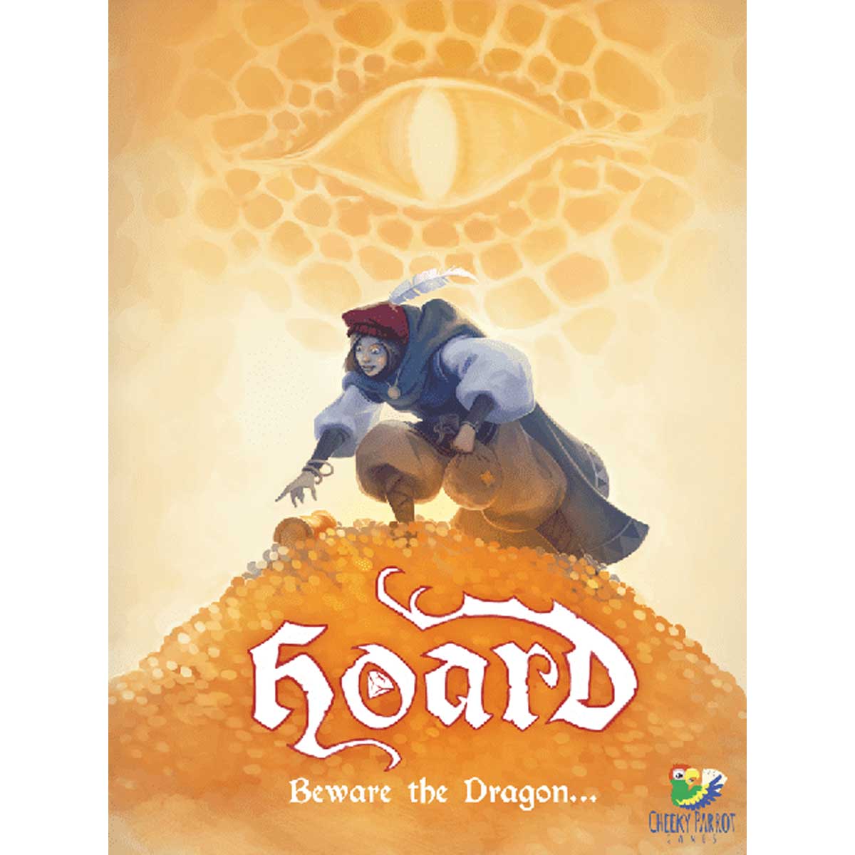 Beware the dragon! Glittering treasure surrounds the slumbering dragon. The adventurers sneak into its cavern, each hoping to plunder the most valuable items for themselves.