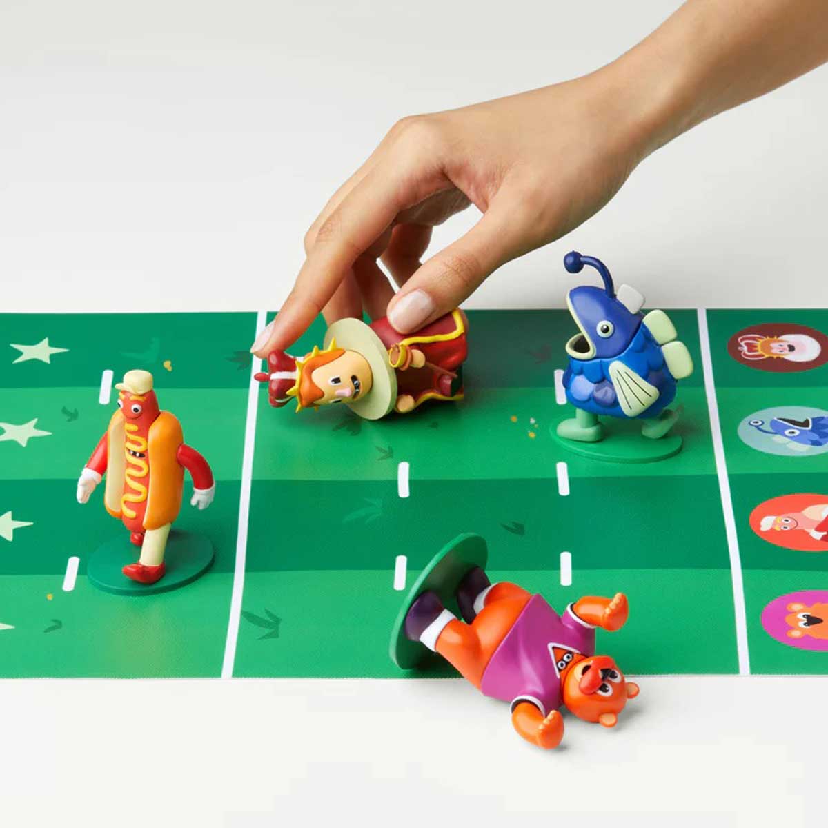 Comes with 4 chunky mascot figures and a ridiculously long pull-out racetrack.