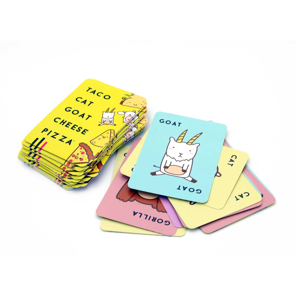 Taco! Cat! Goat! Cheese! Pizza! is as unique as its name. It’s a power packed quick and simple punk party game.